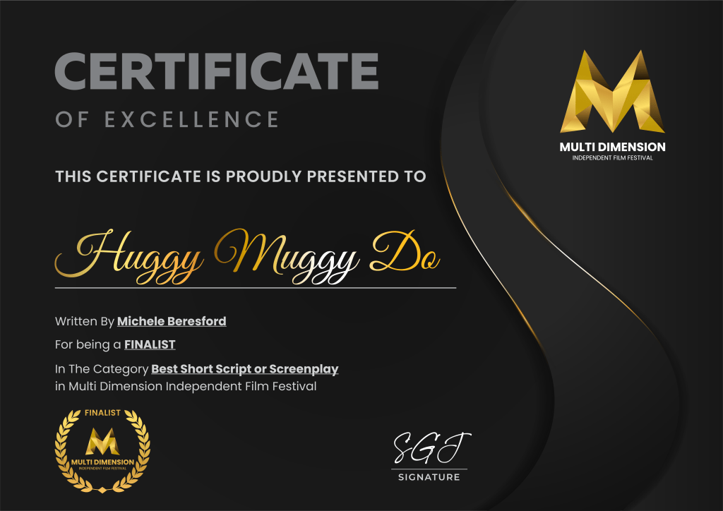 Huggy Muggy Do was a joy to write with my grandson, Finn. Recently, I converted it to a script for a short film. Thank you Multidimension Independent Film Festival. So proud to be a finalist.