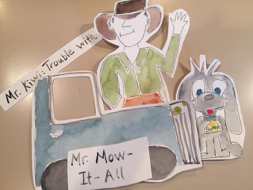 View the book trailer for Mr. Kiwi: Trouble With Mr. Mow It All